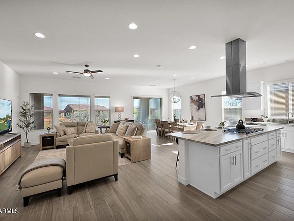 This Popular Model on a Premium Lot has 2 Luxurious Suites & a 3rd BR next to 3rd Bath with tub Plus a den. 3 garage spaces and extra storage in both Garages. Gourmet Kitchen package with Leathered Marble Countertops White Upgraded Cabinets Gas Stove top and Stainless Steel appliances. Refrigerator, Washer and Gas Dryer stay. Ask about available Furniture and all you need to move right into your Better than new Home. Beautiful Wood look Tile. This Smart home includes Alarm. Lovely Landscaping, Pavered Driveway and walkway to Front door. Exterior was repainted in 2025. Trilogy at Vistancia offers Resort amenities like Heated pools and Spas, Golf, Tennis and Pickle ball, Restaurant, workout facility and so many opportunities to meet new friends and enjoy AZ. Location, Location Location!