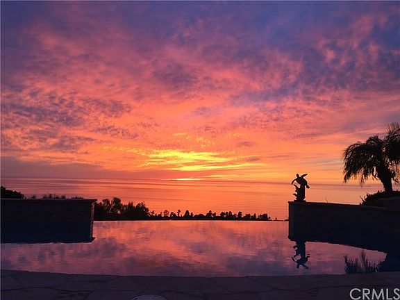 This incredible home situated atop the Palos Verdes Peninsula uses its location and panoramic view of Catalina & the Pacific to provide an oasis for entertaining & relaxation. Enter thru the private courtyard to this elegant home that was extensively remodeled in 2008. The ultimate entertaining home, with expansive stone terraces and lawns, and a salt-water infinity pool with raised spa, water feature and stone fire pit, all overlooking the unobstructed 180-degree view of the ocean and Catalina Island. The main floor features formal living and dining rooms and a large gourmet kitchen that opens to the great room/family room. The main floor also features a guest room and bath. The upstairs features a large master suite with a private bath and walk-in closets, opening to a balcony that wraps the entire view side of the house. In addition, the upstairs features two additional bedrooms (including one large bedroom that was previously converted from two bedrooms), as well as a large bonus room with wet bar, private bath, and Murphy bed that offers an excellent option for overnight guests. Three of the baths have jetted tubs. The bonus room also has a second staircase that is perfect for backyard/pool access. Laundry area in garage and upstairs. Located in the nationally ranked Palos Verdes School District, with easy access off the hill for commuters.