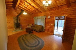 Wonderful 3 bedroom Log Home. Off grid on 4 separate parcels that total 5+ acres. Home has been completely remodeled.Beautiful kitchen with breakfast bar and refrigerator. Approx 1354 sqft,& bright open floor plan with vaulted ceilings.Beautiful interior wood doors. One car detached garage,pump house with washer/dryer hookups.Great, covered porches for enjoying the views.Self contained + permitted