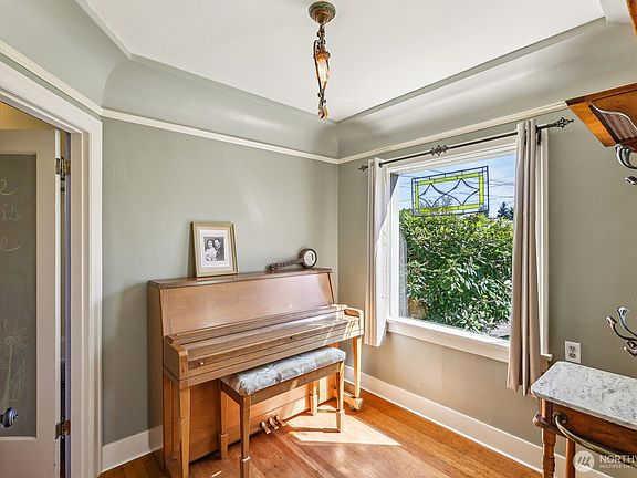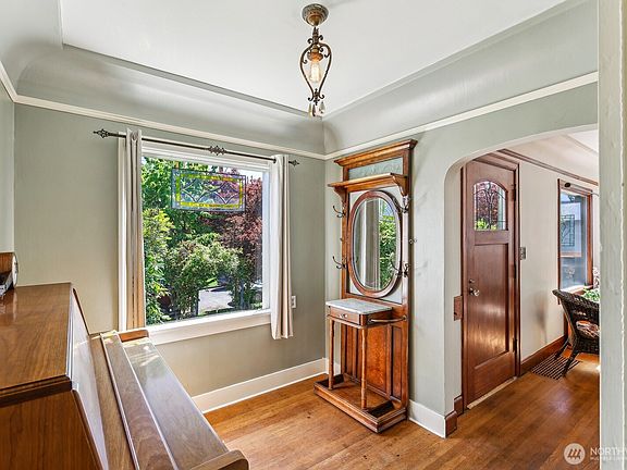 Classic charm blends w/ energy efficient updates in this 1930 Tudor in Ballard’s coveted Sunset Hill. Original mahogany millwork, coved ceilings, slip-shade light fixtures & classic old-Ballard mock-Bachelder fireplace pair with tankless WH, high-efficiency furnace & double-paned windows. Formal living & dining rooms archway to remodeled kitchen w/ slate counters, glass tile & period double-drainboard sink. French doors open to spacious deck overlooking backyard oasis w/ 5-fruit trees & butterfly gardens. 3 bedrooms up include primary suite w/ balcony, BRs on main & basement flex as office/family room - or future ADU. Prime Location! Quiet street near Golden Gardens & Secret Beach, Ballard Locks, trendy bars & neighborhood greenmarket.
