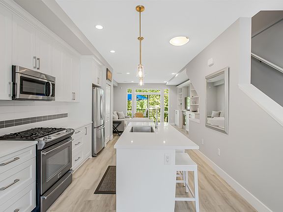 Welcome to the NICHE! This beautifully designed 3 bedroom townhome is turn key and ready for you to move in! Enjoy designer touches throughout, including luxury vinyl flooring and a sleek, chef-inspired kitchen featuring white cabinetry, quartz countertops and a premium 4-burner gas range. Step out onto the north-facing balcony looking at a tranquil greenbelt, or unwind in the fully fenced backyard with artificial turf. Upstairs, the primary suite offers a relaxing retreat with a large closet and spa-inspired ensuite complete with double sinks a deep soaker tub and walk-in shower. Ideally located just minutes from Grandview shops, top-rated schools, and transit. This complex also offers a clubhouse and fully equipped gym! Don’t miss your chance to call this one home!