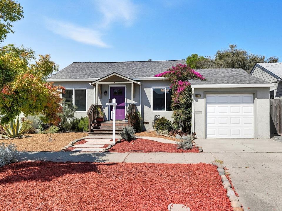 Charming one-story home with two bedrooms and one bath(Rebuilt in 2013) + with a newly built backyard, office/studio space(Built in 2021). Kitchen with wood cabinets, gas range and stainless-steel appliances that give a modern feel. Lovingly landscaped large backyard with fruit trees and a finished detached home office to use as your home office or personal retreat. Washer/Dryer in garage. Close to local schools, restaurants, public transportation, BART and 580 freeway. 6 minutes from Bart station, 1 mile to Wildcat Canyon Regional Park, 9.9 miles to UC Berkeley, 12.5 miles to Oakland, 18.5 miles to San Francisco. 955 square foot home in North & East neighborhood with large backyard and a separate 120 square foot office with ethernet connection for high speed internet access perfect for working remotely or for hosting a private practice. Home qualifies for Community Reinvestment Act Loans, allows below market mortgage interest rates, as little as 3% downpayment, minimum 640 FICO,no mortgage insurance required- for qualified buyers. Central heating, gas fireplace, new appliances (2023), 1 car garage, large backyard with a small stone patiomature pepper tree, multiple producing fruit trees and plenty of space for gardening.