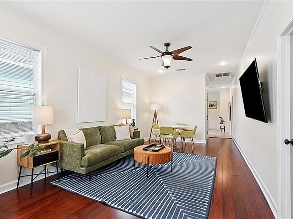 Bursting with charm and modern updates, this home is perfect for anyone looking to own a unique piece of the city. The spacious, sun-filled living room welcomes you with huge windows and sleek engineered wood floors, creating the perfect vibe for relaxing or entertaining. The glamorous kitchen--fully updated in 2023--boasts lacquered cabinets, quartz countertops, and a stackable, newly replaced washer/dryer, all with easy access to the private, fenced backyard--ideal for pets, gardening, or your next backyard bar-becue. Every bedroom is independently accessible, making this an ideal home for a family, a roommate setup, or a smart invest-ment property. Fully functioning homeowner-owned solar panels mean affordable energy bills during our New Orleans summers. With major upgrades including a new roof, new HVAC, and new flooring in 2023, this home is truly move-in ready. Annual sub-