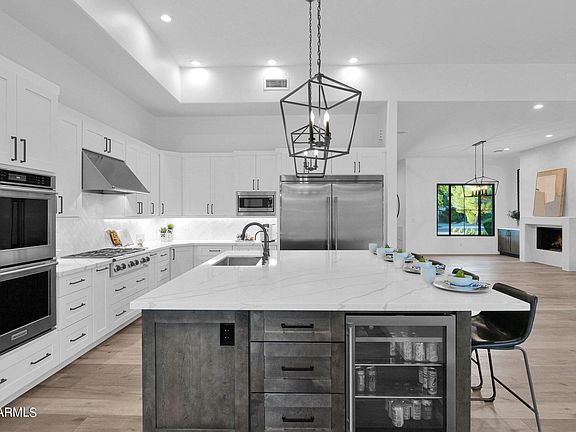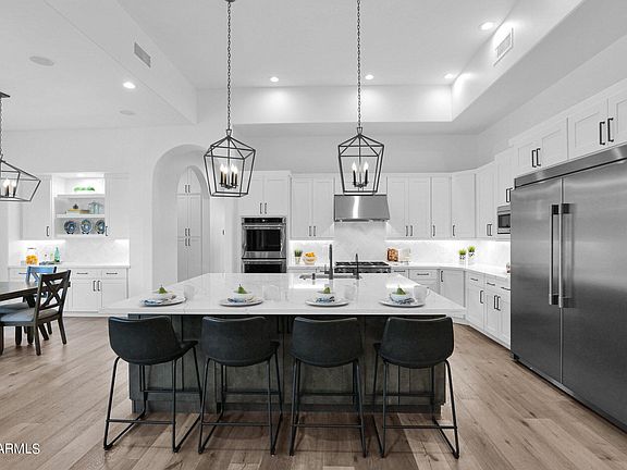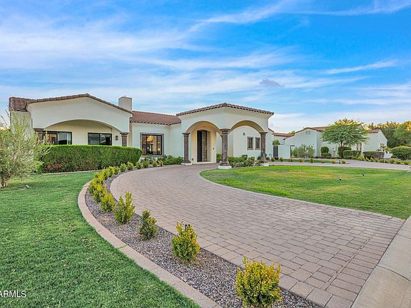 Spectacular and rarely available custom home with fully appointed guest house in the coveted gated community of Whitewing. This completely renovated home features new HVAC, new wide plank wood floors, new kitchen, baths and windows throughout. In addition to 4 bedrooms & 3.5 baths in the main home, the detached guest house offers a perfect space for long term guests, including living, kitchenette, bedroom & full bath with walk in shower, dedicated laundry center and full one-car, temp control garage. This thoughtfully renovated custom home brings together all of today's favorite finishes within a stunning open concept. Enjoy a formal dining space with fireplace open to generous family room with a wall of glass to take in the lush park views. Elegant gourmet chef's kitchen features custom cabinetry, quartz counters & high-end appliances, and a lovely breakfast area with plenty of storage. The owners' retreat is sizable yet intimate, with a luxurious spa bath featuring vessel tub, custom wall finishes & gorgeous new lighting. There are two additional bedrooms with renovated third bath, ensuite guest space, beautiful office space with double doors, powder room & fantastic laundry center, rounding out the main house. Your ultimate outdoor sanctuary brings together the park views, expansive entertainment space with extensive use of travertine pavers & turf, a perfect dining pergola & grilling area, and refreshing Pebbletec pool & spa with stunning water & fire features. All of this luxury is yours just minutes from shopping, dining, schools and the Gilbert community activities. Welcome Home!