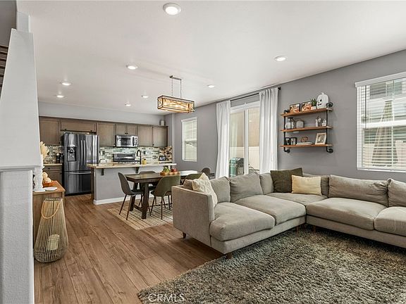 Beautifully upgraded SFR in the heart of Menifee Town Center, featuring parks, pool, clubhouse, walking and biking trails, close to dining and shopping, LOCATION LOCATION LOCATION!! Designer features with LVP floors throughout (NO CARPET) 4 inch base boards, two tone interior paint. The main level offers an open concept kitchen, dining and living room layout. The kitchen features custom (not builder grade) quartz counters, black granite single basin sink, custom subway tile backsplash, upgraded black stainless steel appliances, and matte black cabinet hardware. Powder bath completes the 1st floor. The secondary level offers a spacious primary suite w/ceiling fan, primary en-suite w/dual sinks, upgraded matte black faucets and fixtures, complemented by an oversize walk-in closet. The large secondary bedrooms share a hallway bath with dual sinks and a separate shower/tub area. The laundry room also features a large amount of linen storage. Whole house fan for energy efficient cooling, garage features overhead storage racks, tankless water heater. Backyard patio with turf area, end home so lots of natural light comes in and private yard space, complex has ample parking options. BONUS ** SOLAR HAS BEEN PRE PAID UNTIL 2040** that's right no solar lease payments until 2040!