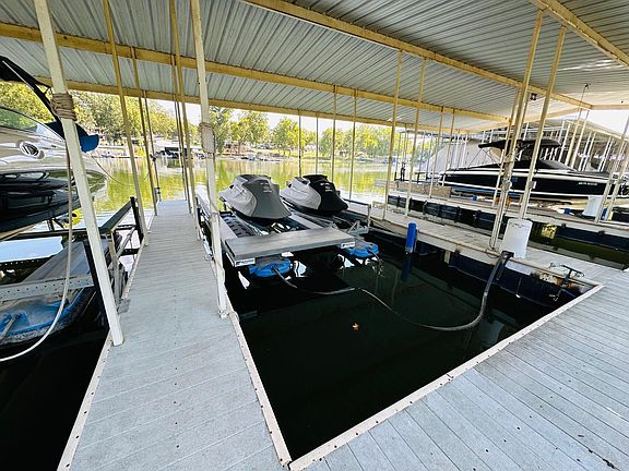 St. Andrews #26. Rare to find one of these on the market. Waterfront location with views to the South. 30 ft boat slip with a lift in Dock #4. Three bedrooms with an oversized two car garage. Huge lakeside patio with room to entertain. Custom high-end interior finishes including tile flooring, granite countertops and stainless appliances. Spacious floorpan with many windows and private location. Huge front yard and extended driveway. Other updates include new roof 2020, new HVAC 2023, New exterior siding, gutters and paint 2022 and other new upgrades. Excellent condition. St. Andrews amenities include a pool just across the street from the property, gated community, activity area including tennis/pickle ball and yard care. A short golf cart ride to Shangri-La Resort.