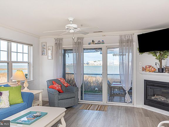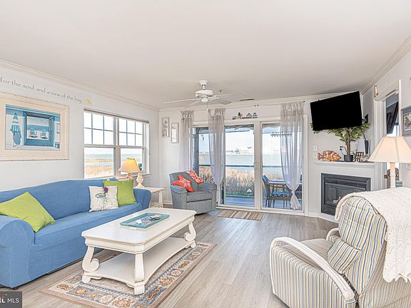 An absolute must see rarely available 1st level 2-bedroom condo situated within the highly sought after Pavilion section of Bethany Bay. Upon entering, you're immediately greeted by breathtaking panoramic bay views, some of the best in the community — a truly unparalleled setting. To the left of the entrance lies the spacious eat-in kitchen, with tiled floors, granite countertops, beautiful white cabinetry, and a convenient pass-through bar that offers uninterrupted views while you cook or entertain. The unit features new LVP flooring in the expansive great room and primary bedroom with carpeting in the guest bedroom. Crown molding throughout and beadboard in the bathrooms add coastal flare. Watch the sunrise each morning from the comfort of your primary bedroom which offers stunning panoramic water views. Whether you're unwinding by the fireplace, soaking in the water views, or enjoying time on the screened porch, every moment in this home is infused with tranquility. This unit is ideally situated next to Bethany Bay’s private beach area and in a prime location near the community boat ramp and fishing pier. This gorgeous waterfront community boasts 420 acres of land with over 200 acres of protected wetlands and lush landscaping throughout the community. Water enthusiasts will delight in the community's amenities, including a boat ramp and kayak launch for a day on Indian River Bay. Enjoy a leisurely round of golf at the beautiful 9-hole course (with a pro shop) or take a refreshing dip in the outdoor swimming pool or hot tub. Stay active with tennis, pickleball, basketball, and volleyball courts, or explore miles of nature trails winding through wetlands. They even have boat storage! The clubhouse features a fitness center, and there's even a tot lot for the little ones to enjoy. Just 3 miles from Bethany Beach and Boardwalk, indulge in fabulous local dining and tax-free shopping. Sold partially furnished, including a sizable storage shed located right next to the unit for all your beach essentials. This home is turn-key and poised to become the backdrop for your cherished beach memories from the moment you step inside!