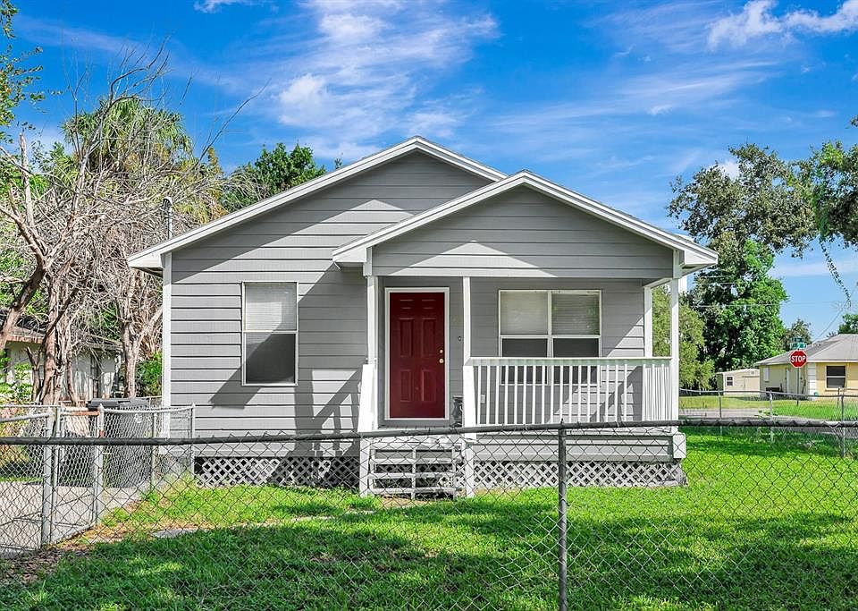 One or more photo(s) has been virtually staged. This newly renovated, move in ready 3-bedroom, 2-bath Palmetto home sits on a spacious corner lot with a fenced yard - perfect for outdoor living and extra privacy. Enjoy a large front porch and new side-door steps, plus a new roof (2025), freshly installed window screens, and a freshly painted exterior for instant curb appeal. Inside, you’ll find a bright layout with a separate dining area, convenient indoor laundry, and luxury vinyl plank flooring (2023) throughout. The renovated kitchen shines with white cabinets, a pantry, and a brand-new refrigerator and stove. The primary suite offers a walk-in closet, while new ceiling fans throughout, along with an updated water heater, add comfort and efficiency. Close to Palmetto's shops, dining, and the scenic Manatee Riverfront.