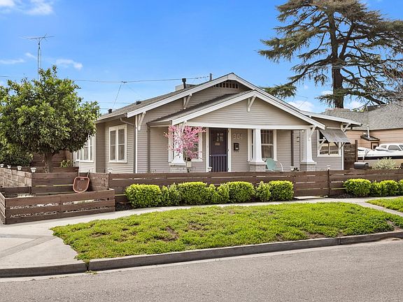 Located in historic downtown Ripon, this gorgeous home has all the unique features of an original craftsman; Oversized bedrooms, detailed window trim ,unique interior woodwork, window seat storage, built in hutch, timeless single hung windows, and exterior wood siding. The home has a beautifully renovated kitchen with dual pantry closets-one with a chalkboard door, Stainless Steel appliances, custom shaker cabinets, easy glide drawers with dovetail joints, darling distressed wood tile floor, classic farmhouse sink, and solid colored quartz countertops. Custom made blinds with fabric ribbon in main living areas, New laminate wood floors in the bedrooms, family room, and dining room. Newer HVAC, newer roof, newer water heater, and newer fence around the property. Home also includes an exterior Shed with Air previously used as an office. Room for ADU. Bring your Chip and Joanna Gaines ideas to life and make this home yours. (buyer is responsible for verifying ADU city requirements