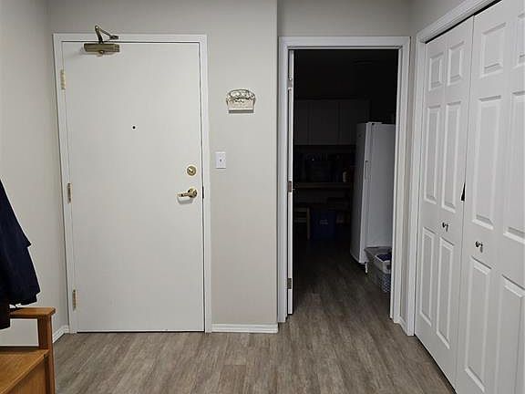 Move in before winter sets in! Quick possession is possible! Welcome to this sunny, south facing, second floor corner unit in Birch Place Condos in Watrous. This updated 1,108 sq. ft. unit was built in 2001. The open kitchen, dining, and living room area makes this condo feel spacious. Vinyl plank flooring is laid throughout the unit. The master bedroom features a large closet and 3-piece ensuite. The main bathroom has a tub/shower with grab bars. The second bedroom contains an oak wall unit with fold down murphy bed making it roomy and versatile. Off the living room is a door leading to a sunny, south facing balcony. The large laundry room has a built-in fold down ironing board. Other unique features are a lighted wall niche and a sun tunnel in the foyer that provides natural light to the entrance. A pantry off the kitchen allows for extra storage. A large 10'8" x 26'6" garage stall with 7' (h) x 9' (w) door is included in the ground level heated parking garage off the back alley. A storage unit is also located in the garage area. This building is wheelchair accessible and contains an elevator. Call your agent for a viewing! Please Note: Seller is NOT interested in renting until condo sells.