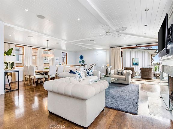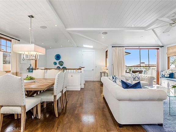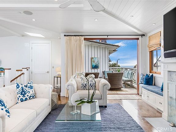 The soothing blue and beige tones of this impeccably designed beach home bring to mind a treasured piece of sea glass, plucked from the shores of the beautiful coast. This 4-bed 3.5 bath home maintains a relaxed beach vibe, but is elegant in design with special touches such as tongue and groove on beamed ceilings, Herringbone, stone faced fireplace and elegant wide plank oak flooring that grace the great room. Nano doors open onto an expansive slate covered ocean view deck with outdoor fireplace. The gourmet chef's kitchen is a dream with its large marble center island and breakfast bar. Sparkling stainless steel appliances include a GE Monogram convection oven and microwave, a 48" professional range with two ovens, a glass door commercial Subzero side by side refrigerator/freezer, and separate wine cooler. Take the 3 stop elevator to the second level with luxurious primary suite, huge walk in closet, outdoor private shower, additional bedroom with ensuite bath and oversized laundry room. The lower entry level has 2 additional bedrooms one of which is currently furnished as a home office with built in wine cellar. This stunning executive home is available to be completely furnished and move in ready for the ultimate in beach living. This unique property is ideally situated in downtown Manhattan Beach, close to restaurants, boutiques, the Pier and 2 blocks to the beach. Yes you can have it all!