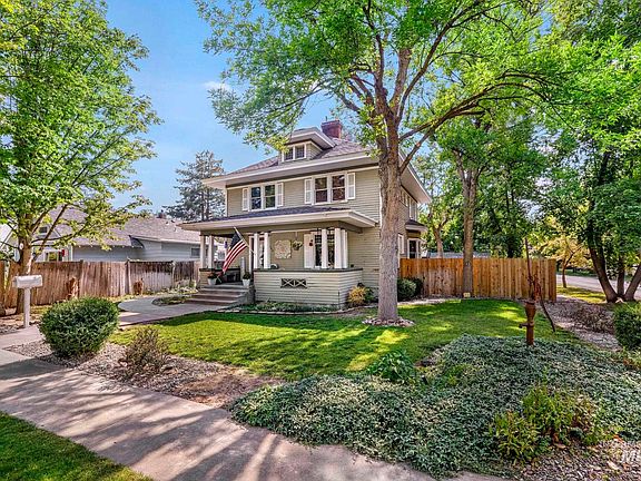 NEW ROOF 2025 ~ Welcome Home! Here is your chance to own this gorgeous home that is known as an American Foursquare with four exterior features with all the charm and elegance intact. The main floor boasts gorgeous wood staircases leading to the 2nd story, original hardwood flooring, beautiful bay windows, built-in hutch, wood burning fireplace, remodeled kitchen and spacious laundry room. There is one bedroom and bathroom on the main level and upstairs comes with 4 additional bedrooms and guest bathroom. Electrical was updated a few years ago, Heating and AC Unit 3 years old. Home is fully fenced with automatic sprinklers, firepit area for entertainment and a 2-car detached garage. This home is in the Historical District of Twin Falls.