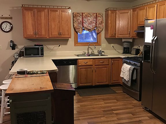 Move in ready! Motivated seller! 3 bedroom/2 bath home. Small town living close to town. Three Bedrooms upstairs (2 are the same size, one isn't shown in the pictures) are carpeted with laminate flooring throughout the remainder of the home. Open kitchen and dining room to the living room. The basement has a large recreation/family room that has laminate flooring. Above ground pool with large deck that has been refinished. Large yard with privacy fence. Attached two car garage.