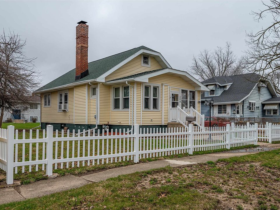 LOTS OF CURB APPEAL! 2+ bedroom, 1 bathroom close to downtown shopping and entertainment. This charming bungalow has loads of potential. Main level includes sun room, living room with gas fire place, kitchen, bathroom, office and bedroom. Entire second floor has been converted into a bedroom, or it can be used for storage space. Basement includes a well maintained work shop, laundry area, and an additional room. With an attached one car garage, the outside is super cute with its white picket fence.