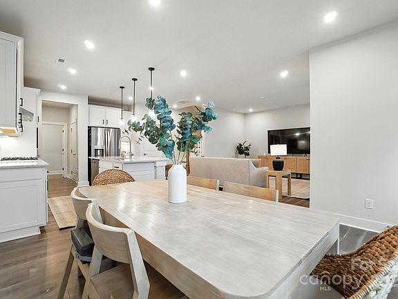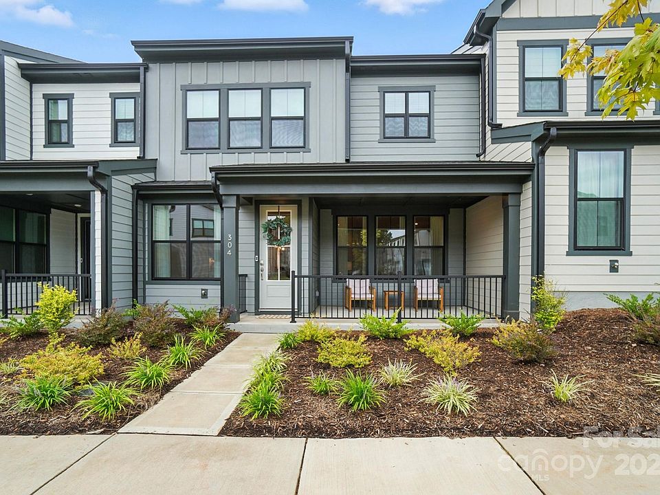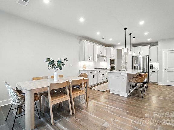 Like new and ready to move in! This immaculate townhome offers an open layout with designer finishes! The upgraded kitchen features under cabinet lighting on a switch, a single bowl undermount stainless steel sink, gas cooktop, under cabinet vent hood, built-in stainless steel microwave and wall oven combo, and tons of pantry space! The oak box staircase with open rails brings you upstairs to a versatile loft. On one side of the second floor is the spacious primary suite, including a private bathroom with tiled shower and dual vanities, and a large closet. The other side of the second floor includes a convenient upstairs laundry room, an additional full bathroom with dual vanities, and two spacious secondary bedrooms with ample closet space. Outside, relax on the covered front porch, or meet your neighbors at the community pavilion and activity lawn. Come enjoy low maintenance living just minutes from Lake Wylie and downtown Belmont!