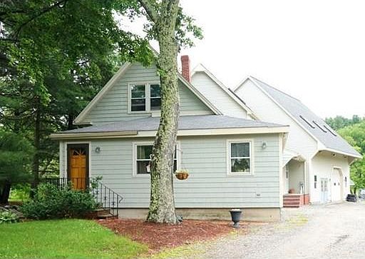 Highly visible commercial/residential property sited on 10+ acres close to Rte 2 highway access. House has been fully renovated with wood floors and windows updated throughout. Lovely cherry kitchen has tile floor, stainless gas range, maple chopping block peninsula, light filled tile dining room with picture window open to tiled family room with wood stove and side door to private patio bounded by original stone wall. Comfortable living room, office, bedroom, full tile bath, laundry room and entry/sun room complete the first floor. Second level includes master suite with 2 closets, one walk-in, tile bath w/granite counter and double sinks plus additional bedroom, full bath and sitting room. Large insulated workshop (heat ready for finish) with oversized overhead door for shop or salesroom plus additional storage above and garage. Plenty of parking! Tons of possibilities for your business or work from home.