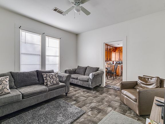 Welcome to this 3-bedroom, 1-bath home offering great use of space. As you enter through the threshold, you step into the living room, which flows into the designated dining area and kitchen. The kitchen features a walk-in pantry and a convenient door leading to the screened-in back patio—perfect for relaxing outdoors—along with access to the fenced backyard and storage building. Just off the living room is a bedroom that opens to a hallway where you’ll find a full bathroom with a tub\shower combo. This hallway also includes the dryer connection and loops around to a second bedroom. The third bedroom features a closet with secondary access to the kitchen, adding extra convenience and flexibility to the floor plan.With its fenced yard, screened patio, and storage building, this home offers comfortable living with useful indoor and outdoor spaces...