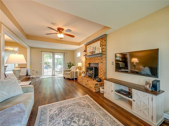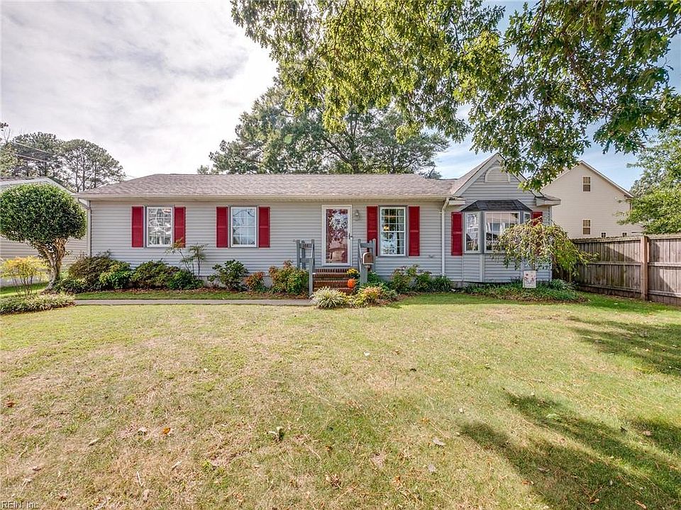 This modernized ranch-style home is nestled at the rear of the neighborhood, facing the water and adjacent to new developments. Just minutes from the beach and a brand new playground, take the path near the house and enjoy close proximity. This home features a spacious, fully fenced private yard complete with a beautiful deck, great for relaxation and entertaining. The kitchen has been updated with stainless steel appliances, and the bathrooms are renovated. The interior boasts fresh paint, new laminate flooring throughout, new carpet and vaulted ceilings. Additionally, the windows have been replaced, the roof is just 15 years old, the water heater is only 3 years old, and there’s a new roof on the detached garage/shed and new roof on den with chimney.