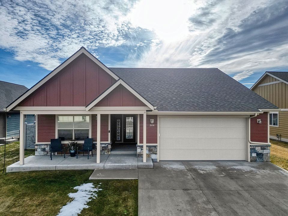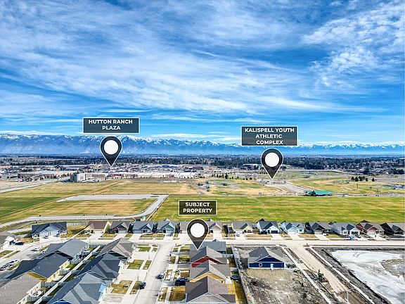 Welcome to this meticulously maintained, turn-key residence nestled in the heart of Kalispell’s vibrant and growing Bloomstone community. This beautifully designed 3-bedroom, 2-bathroom home offers the perfect blend of comfort and convenience: just minutes from Kalispell’s Kidsports Complex, Flathead Valley Community College, Logan Health, Hutton Ranch Plaza, and Kalispell’s finest shopping, dining, schools, and more. The open-concept floor plan is flooded with natural light and features a spacious living area with a ceiling fan, top-down bottom-up & blackout blinds, and a seamless flow into a beautiful kitchen with a large island, granite countertops, stainless steel appliances, soft-close drawers, traditional closet pantry and integrated custom cabinetry storage.