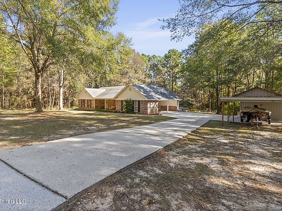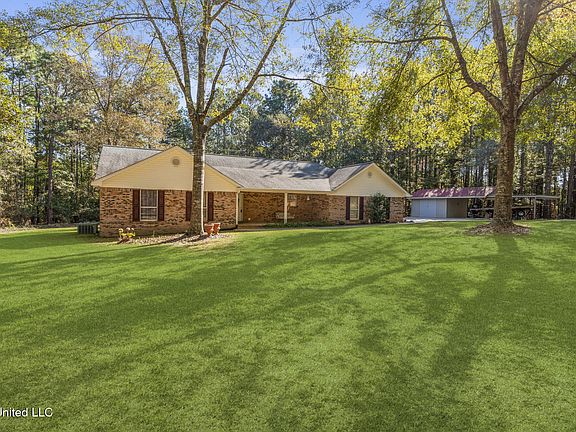 A slice of Paradise in Purvis! Tucked on roughly 1.5 acres just outside town, this one-owner 3 bedroom 2 bath home sits in a quiet, wooded setting with room to spread out and enjoy the peace and privacy. The home has been well maintained, thoughtfully updated, and offers multiple outdoor spaces, storage options, and a functional layout that feels comfortable from the moment you walk in. Inside the kitchen, you'll find solid-slab granite countertops, abundant counter-height outlets, a custom hand-laid glass tile backsplash (installed about two years ago), and under cabinet lighting. Appliances were replaced in 2019 and include an electric range with a recirculating microwave/vent and stainless dishwasher. Additional upper cabinets with etched glass doors give you even more storage and style. The rear living room offers flexibility for dining and seating arrangements with elevated natural-wood windows spaced perfectly for a TV wall. This room once held a fireplace and exterior doors and was reconfigured to create more usable wall space. LVP flooring, directional lighting, and wide cased openings to the kitchen and foyer keep the space feeling open and functional. Both bathrooms have been updated with sparkling quartz vanities. The hall bath features dimmable lighting with a remote, a mirrored cabinet above the toilet, and plenty of additional storage. The two front bedrooms each offer good closet space, one with a large walk-in featuring dual hanging rods, wood shelving, and open upper storage. The primary suite includes a massive walk-in closet with double-hanging options and an updated bath with beadboard walls, a quartz vanity, upgraded hardware, a feature-rich powered mirror, and a spacious tiled shower with glass door, accent tile band, and built-in bench seating. A private door leads directly from the bedroom onto one of the home's rear decks. Outdoor living is a highlight here. Extensive decking stretches across the back of the home, including a large covered section with built-in bench seating and a second open deck off the primary bedroom. The backyard offers a gentle slope for ideal drainage, and the landscaping includes azaleas, camellias, hydrangeas, gardenias, blueberries, oak and pine trees, and a mulch-bordered firepit area with a block-built pit ready for cool nights. Storage is abundant. Off the carport is a large enclosed storage room with pull-down attic access (featuring an 8-ft-wide decked area), installed shelving, and natural light. A separate approximately 16×12 metal shop includes power, lighting, mounted board storage, gutters, and an extended covered section at the front perfect for a boat, mower, or equipment. Other features include double-pane windows, gutters with guards around the home, and a peaceful homesite with quick access back to Purvis. If you want quiet acreage, a well-kept home, and plenty of usable space inside and out, this one checks the boxes. Schedule your private viewing today!