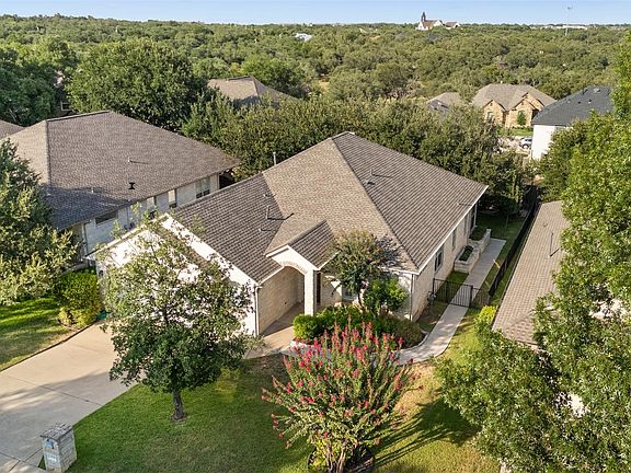 Sparkling home with NEW CARPET 7-2025 and FRESH PAINT 7-2025; Unbelievable opportunity to live in desirable Texas Traditions in this move-in ready home! PLANTATION SHUTTERS throughout! Office / Study located just steps from the front entry. Oversized Living Area opens to the Kitchen and Dining areas. This living area offers a spectacular view of the HEAVILY TREED BACK YARD! Master Bedroom has HIS AND HER CLOSETS and a stylish barn door to allow privacy for the Master Bath. Master Bath with dual vanity, a dressing counter and large rain glass front walk-in shower. 2 Additional Bedrooms provide essential guest quarters - 1 guest room provides a charming built-in curio cabinet. Do not miss the SCREENED IN PATIO complete with ceiling fan. The view it offers is of the meticulously designed and maintained yard - complete with a GROVE OF LIGHT WRAPPED TREES! The garage provides a side bump-out with built-in cabinets, a handy pegboard, and a workbench. Why would you look anywhere else? Texas Traditions is a 55+ neighborhood.