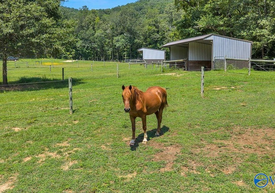 22 ± Acre Horse Farm Near City Harbor, Guntersville! This well-equipped property offers pastureland, multiple paddock training areas for individual horses, and three run-in shelters—each sized to comfortably accommodate up to 2 horses. The shelters feature subsurface drainage and covered light switches for horse safety. Additional amenities include a round pen for starting or breaking horses & a 150' x 325' unfenced arena. The property has a well with filtered water & existing power on site. The thoughtful layout is designed for efficient horse care and training. Property is restricted against mobile homes & RVs.