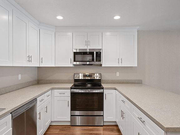 Newly Renovated within 1 year Fully Equipped Kitchens White Shaker Panel Cabinetry and Brushed Nickel Hardware Stainless-Steel Appliances Dishwasher Walk-In Pantry Washer and Dryer Plush Carpet and Wood-Style Flooring Ceiling Fan Walk-In Closets Private Patio or Balcony Extra Storage