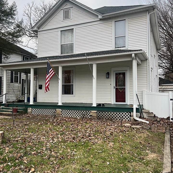 Nice circa 1903 two story frame Victorian style home conveniently located near downtown Elizabethtown. Awesome character with all the charm from the past! 24x32 detached garage/shop building PLUS a second garage/shop also! Wood and vinyl flooring, nice front porch for sitting! Tall 10 foot ceilings on first floor! Mature shade and privacy fenced rear yard.