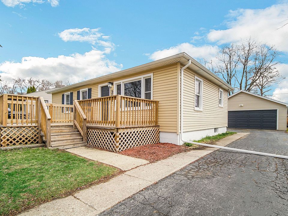 MOVE-IN READY, Completely UPDATED, 4Bdrm/2Bth Ranch Home w/ FINISHED BASEMENT and Oversized 2.5 Car Garage in DESIRED CROWN POINT LOCATION, close to Historic DOWNTOWN SQUARE and ALL CONVENIENCES! Low Maintenance, Vinyl-sided Exterior w/ Newer Front Deck WELCOMES YOU into OPEN CONCEPT Living Space. Living Rm boasts Recessed Lighting and REFINISHED HARDWOOD FLOORING, which flows throughout Main Level Hallway and into All 3 Main Floor Bedrooms. Living Rm overlooks COMPLETELY UPDATED KITCHEN w/ White Cabinetry, Eat-in Bar, QUARTZ Cntrtps, Subway Tile Bcksplsh, & SS Applcs. Both Bathrooms have been COMPLETELY REMODELED w/ Sleek Tile Shower Surrounds including Built-in Niches. Finished Bsmt offers Additional Living Space including Rec Rm w/ Recessed Lighting and 4th Bedroom w/ Egress Window and Large Closet. Fenced Backyard w/ Oversized 2.5 Car Garage w/ Built-in Shed off Back of Garage for Additional Storage. TRULY A TURN-KEY HOME - READY FOR YOU!