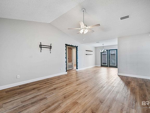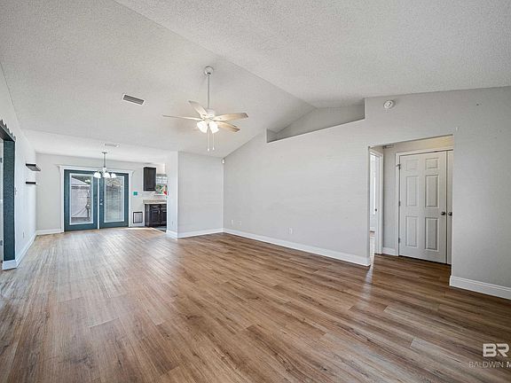 Oak Village is a quiet little spot less than 10 minutes from downtown Foley. This home is tucked away on a single street ending in a cul-de-sac, and best of all, there's no HOA! You're close to shopping, dining, and entertainment at OWA Parks & Resort, Tanger Outlets, and just a short drive to the white sand beaches our area is known for. This 3-bedroom, 2-bath brick home offers 1,353 square feet of comfortable living space with a split floor plan. Recent updates include new vinyl tile flooring in the kitchen and bathrooms, giving it a fresh feel. The outside HVAC unit was replaced in 2013 and the roof was replaced in 2019. The living room feels open and inviting with vaulted ceilings, making it a cozy place to relax. The kitchen overlooks the backyard, filling the space with natural light. The master suite is a private retreat with a walk-in closet and an en-suite bathroom, featuring a new soaking tub/shower combo—perfect for unwinding at the end of the day. Step outside through the French doors onto your back patio, the ideal place to entertain friends and family. End your day with a soothing soak in the hot tub, all within the privacy of your fenced backyard. There is also an extra hookup available for a washer in the garage. This home is the perfect place to settle in and make lasting memories! Buyer to verify all information during due diligence.