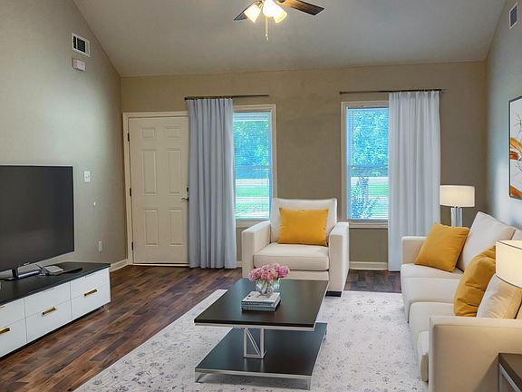 This beautiful NEW CONSTRUCTION home is MOVE-IN READY and perfect as a FIRST HOME or an INVESTMENT PROPERTY. It is 1339 sqft. and sits on a 0.21 acre lot. The house has all the features you are looking for at a price that doesn't break the bank. It has a modern open concept living room and kitchen space with fabulously high, vaulted ceilings and recessed lighting. The kitchen has lots of custom cabinets, soft-close drawers, granite countertops and stainless steel appliances (NO REFRIGERATOR). The split floor plan boasts a master bedroom with large walk-in closet and a master bath with a walk-in shower and granite-topped double vanity. The guest bedrooms are spacious with double door closets and the guest bathroom includes granite countertops and tub/shower combo. There is a spacious laundry room with wire shelving, and a 2-car garage that has attic access & attic storage.