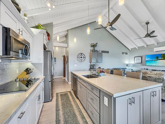 Beautifully remodeled beachfront condo! Experience amazing, vast and unobstructed views of the azure Caribbean Sea, Buck Island, Green Cay, neighboring islands, and Christiansted Harbor! Located in a well-maintained gated community, this gorgeous end unit condo was completely remodeled - wiring, plumbing, interior walls, custom cabinets, countertops, tile floor, stainless steel appliances, bathrooms, mini-split ACs, water filtration system, on-demand hot water heater, doors - including impact glass sliders - all new! Tastefully decorated with great attention to details, this condo feels like a home. It's private, spacious, and cozy. Come see this wonderful light filled condo with vaulted ceilings kissed by the Caribbean breezes. Owner financing possible.