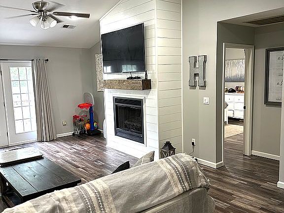 Inside, you’ll find a warm and inviting living area with a cozy gas fireplace, complemented by new luxury vinyl plank flooring and many recent updates throughout. The kitchen features granite countertops and plenty of cabinet space for all your cooking needs.