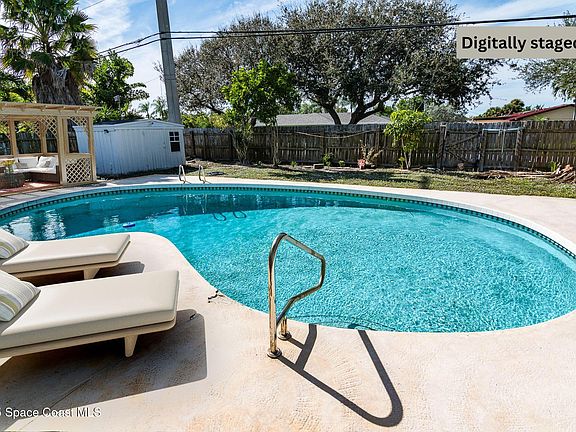 Opportunity knocks! Affordable beachside pool home in Indian Harbor Beach! This updated gem is ready for you. A new roof and fresh paint inside & out give great peace of mind. The HVAC system is just 2 years old, so you'll enjoy efficient comfort from day one. Inside, you'll find mostly tile and terrazzo flooring throughout for a cool, clean feel. The large kitchen offers plenty of room to cook, entertain, or customize to your taste. It adjoins a cozy sitting area with a classic brick fireplace, a casual dining area, and a spacious family room, offering a wonderfully flexible living space. Step outside to a screened porch overlooking a generous, private lot with your own in-ground pool and a cool built-in brick barbecue grill—your personal oasis for Florida living. Located just minutes from the beach in a charming, quiet community, you'll have convenient access to the coast, top-rated schools, local dining & all the everyday conveniences you'll appreciate. Embrace your new lifestyle!