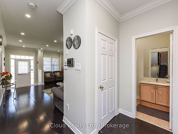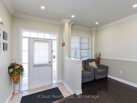 Welcome to this Stunning Greenpark-Built Detached 2-Storey Home nestled in the desirable Scott and Main area of Milton. Offering approximately 2,500 sq.ft. of Beautifully Designed Living Space, this well-maintained residence features an open-concept layout with 4 spacious bedrooms and 3 modern bathrooms. The elegant interior showcases hardwood flooring, crown mouldings, 9ft ceilings, and modern pot lights throughout. The stylish kitchen is a chefs dream, complete with upgraded cabinets, quartz countertops, and a gas fireplace that enhances the inviting family room. Enjoy outdoor living with a landscaped front and rear yard, including a charming gazebo and a covered balcony perfect for relaxing. Additional highlights include second-floor laundry, a potential separate entrance to the unfinished basement with a 3pc bath rough-in, and proximity to Escarpment View Elementary School and other amenities. This is truly a must-see home!