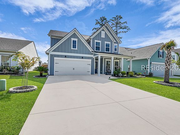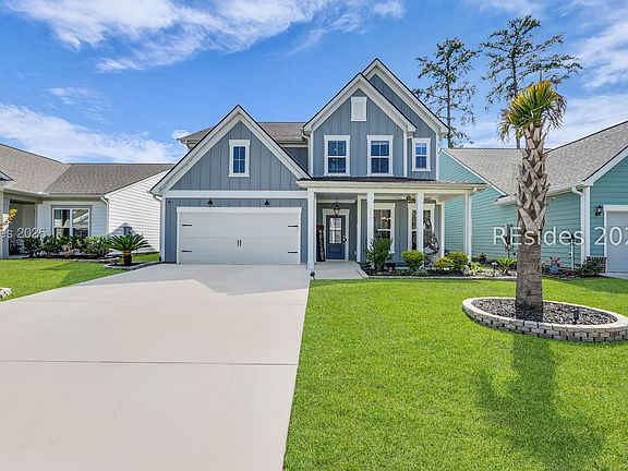 Beautiful Malind Bluff home, offering style and functionality. This home features 5 bedrooms, 4 full baths, a flex room and office at the entrance, open kitchen/dining flowing into a beautiful living room, with a first-floor guest bedroom. Upstairs offers a spacious loft, ensuite, Jack-and-Jill bedroom, and a large primary suite. Outside, enjoy the screened porch, fireplace with seating, fenced yard, and a gorgeous pond view. Located near Okatie Elementary, shopping, dining, and more, the annual POA includes internet and cable. But it doesnt stop there the community offers a dock with Okatie river access, clubhouse, pool, pickleball court & playground everything you need for Lowcountry living at its best!