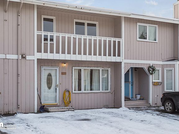 Adorable & clean Planned Unit Development home located in a great South Anchorage neighborhood! Walking distance to one of Anchorage School District's top rated elem. schools & zoned to the top middle & high schools! New paint & carpet through out, tiled bathroom floor & tub surround, laminate on 1st floor, cozy fireplace & private back yard with large storage shed! All bedrooms together upstairs. Large Master bedroom with walk in closet along w/ second bonus closet! All appliances stay with property. Dues include water & sewer, snow removal & ground maintenance for common areas. Great floor plan for entertaining & pet friendly! Call to schedule a private tour!