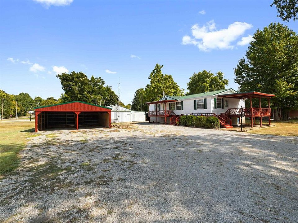 Pole barnSpacious eat-in areaLarge double lotUpdated wood laminate flooringLarge covered gazeboEnclosed carportBright and cheerful kitchen