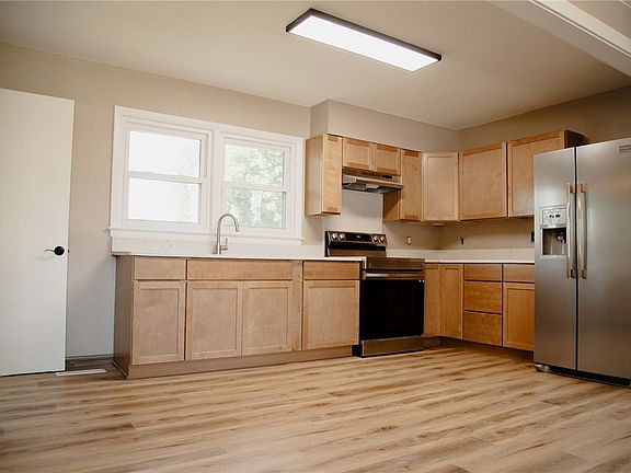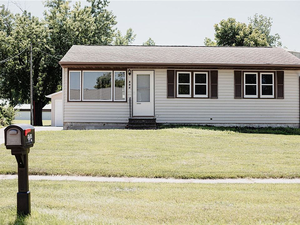 Welcome to this newly remodeled, 2 bedroom 1 bath home! This home has been completely redone on the inside, finished with luxury vinyl plank flooring, carpet in bedrooms, new appliances and beautiful countertops. With a newly built two car detached garage, this would be a great starter home, perfect for someone looking to downsize or to be used as rental income. The plus to this already large lot is you do not have neighbors behind you and there's a bonus lot across a private frontage road, ready for an additional building if you desire. Come check out what Huxley has to offer and have a great home to experience small town living near big city amenities.