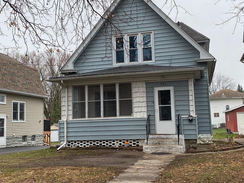This nice three-bedroom, story-and-a-half home features all three bedrooms on the upper level along with a convenient three-quarter bath. The main level offers a spacious living room, formal dining room, ,an updated kitchen and 2 stall detached garage. Enjoy relaxing evenings in the inviting three-season porch. The home welcomes you with a charming foyer and an open staircase, along with beautiful original woodwork throughout. Located just blocks from Albert Lea Lake and the Blazing Star Trail, this home is full of character in a great location.