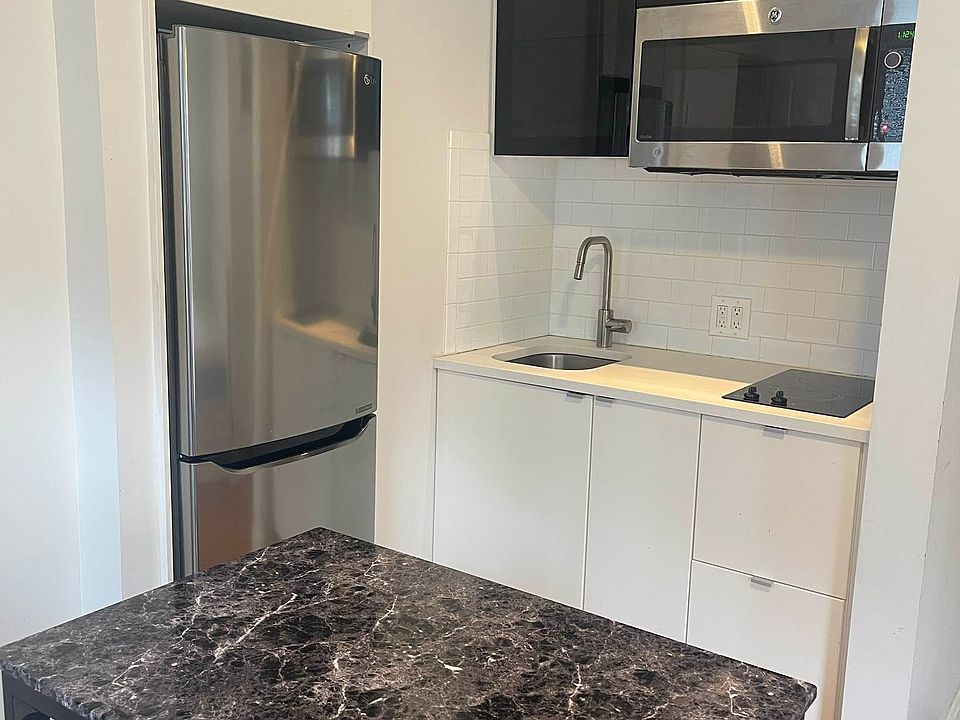 Full size refrigeratorBright and airyElectric cooktopFull-size closetsOpen kitchen