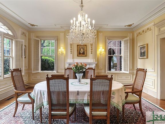 Magnificent full-brick Ardsley estate perched on a prominent corner, on Savannah’s most picturesque block. Step into the grand foyer where historic detail & architectural grandeur abound. Experience soaring ceilings, spacious rooms & classic elegance. A graceful staircase & 2-stop elevator enhance the timeless appeal. The formal dining room stuns w/intricate plasterwork & molding, while the breakfast room features a charming original built-in cabinet. 4 decorative fireplaces w/preserved mantels add historic warmth. Enjoy a cozy den/home office & sunroom overlooking the patio w/pergola. The sunny kitchen is updated w/modern cabinetry, counters & appliances. Upstairs, expansive primary suite includes a private sunroom; beautiful guest rooms & vintage-style bath w/clawfoot tub. 3rd floor suite. Rear service stairs. Drive through porte-cochère. Detached garage & rare extra lot offer room to create lush gardens or design the perfect outdoor retreat.Ultra desirable Chatham Crescent location.