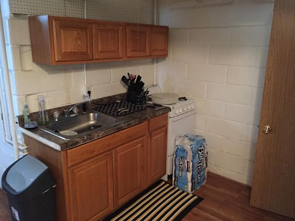 Newer remodeled basement one-bedroom apartment with kitchen area including cupboards, sink, refrigerator and stove. Bathroom includes shower, sink and toilet. Also includes living room and bedroom with large closet. Walking distance to downtown and campus. Laundry appliances just outside the apartment entrance. 360 day lease.