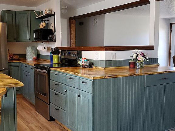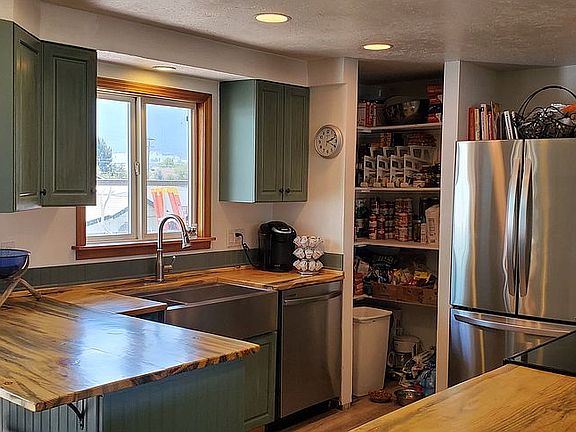 Great family home, quiet neighborhood within walking distance to downtown Enterprise and School. 4 bedrooms, 3 baths, raised ranch style home. 1,232 Square feet livable space upstairs as well as downstairs - total 2,464 liveable space!! Fully finished daylight basement with ingress/egress. Newly remodeled kitchen with all new stainless steel appliances, blued pine counter tops, farm house sink, touch sense faucet and large pantry. New flooring throughout. Other recent upgrades include bathroom counter tops, faucets, and interior paint. Large master bedroom, walk in closet and bathroom downstairs. Laser stove upstairs and bedrooms have ceiling coil heat with separate heat in bathrooms. Downstairs has Blaze King wood stove in family room which warms entire house (all wood currently on the property will stay). 18'X25' shop with attic for storage and small garden shed with lean-to for more storage. Shop has wood stove and pipe that hasn't been installed. Irregular 9,450 sq ft lot with beautiful mountain view from back deck and fenced back yard. Call Terri at 541-263-0519 to schedule a walk through.