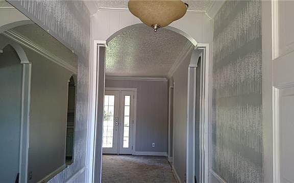 3 bedroom home in Crowley on great oversized lot with lots of space between homes. Iron Gate for backyard access for boat or RV. Extra detail to trim works, moldings and arched entry ways. master bedroom with half bath and two closets. kitchen with charming decrotive woodwork. covered patio for entertaining in backyard, oversized shed for storage or workshop.Fencing sitting on concrete foundation.