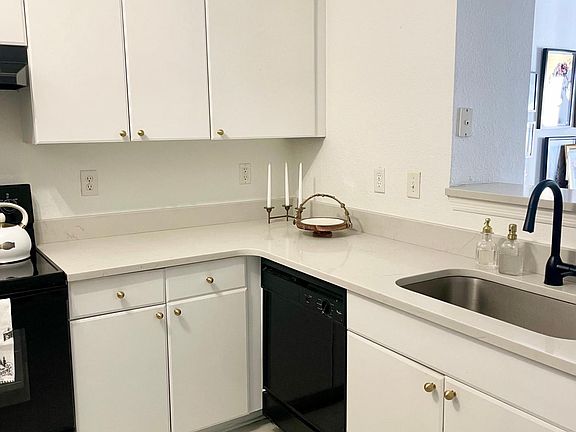 The unit features: a private balcony, washer and dryer, dishwasher, walk in closet, built in bookcase, light faux wood vinyl plank floors throughout (no carpet), faux marble quartz countertops, white cabinets, black faucets, modern bronze light fixtures, and a lot of natural light.