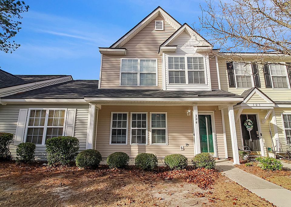Full front porchSunny kitchenOpen family roomVaulted ceilingPrivate bathDining areaCovered patio