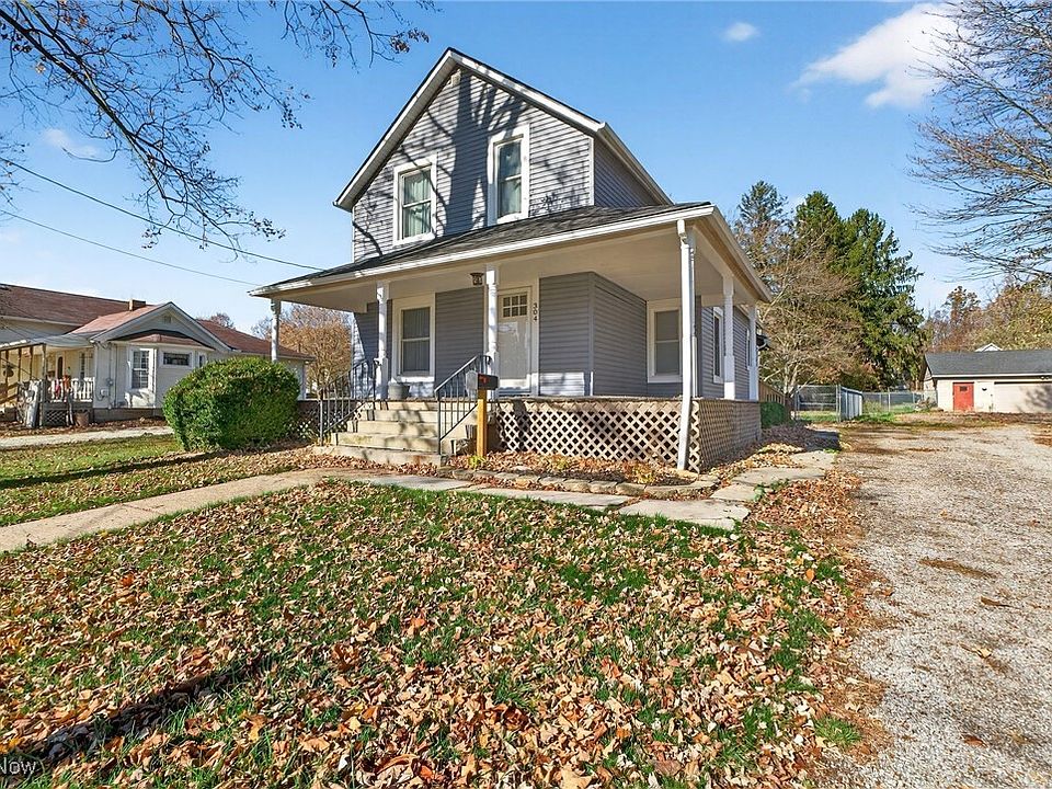 Most updates are already completed. Move right into this South Amherst home in Firelands School District. 3 Bedrooms, 1 and 1/2 bath, the Laundry is right off the Kitchen for easy access. This home is situated in a nicely sized lot with an extra-large 3 car plus block garage where there is access to heat in the garage. Great front wrap around porch for drinking your morning beverage or if you prefer off the kitchen is a covered porch and large deck, also convenient for grilling. A portion of the back yard is also fenced in with chain link fencing. When you walk into the foyer there is a spacious Living Room with a pocket door. The Dining Room is big enough for your family holiday dinners. The Kitchen is at the back of the home, and all the appliances stay. Off the Kitchen is a half Bath and Laundry Room. There is also a Bedroom/Office/Den off the Dining Room. The 2nd floor has an additional 2 Bedrooms with a full Bath. The Master is large enough for your king-size bed and 2 closets. The home offers ceiling fans and blinds throughout. Updates include. Roof approx. 2023, Furnace 2023, AC 2025, Siding and windows approx. 2 to 3 years. Septic pump 2025 it is also on an annual maintenance plan Dewey Pelton. Gas meter installed Sept 2025 by Columbia Gas. The armoire stays in first floor Bedroom and bench coat rack stays in Dining Room.