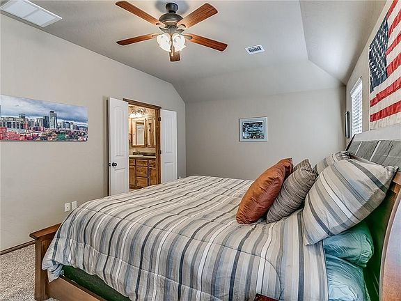 LIKE NEW! Custom Built Home in quiet Gated Community. Full of upgrades! 3-bedroom, 2-bathroom, 2-car garage home. Open floor concept! Granite, stainless steel appliances, tile, breakfast bar. Master Suite features double vanities, large tile shower, over-sized walk-in closet, private patio. Community features a neighborhood safe room for all residence. Neighborhood Centrally located to Tinker AFB, Norman, Downtown OKC.