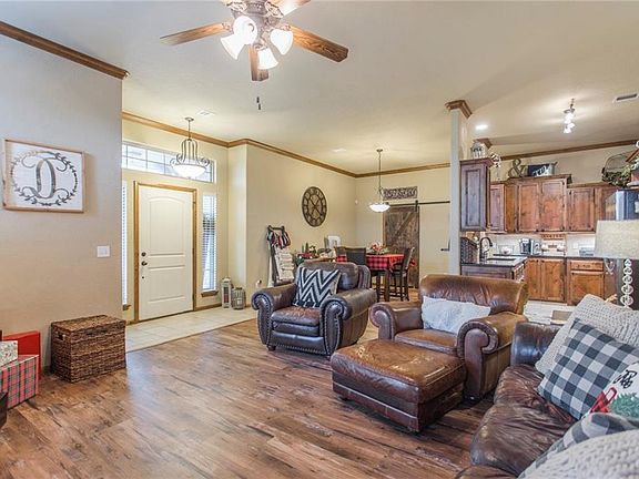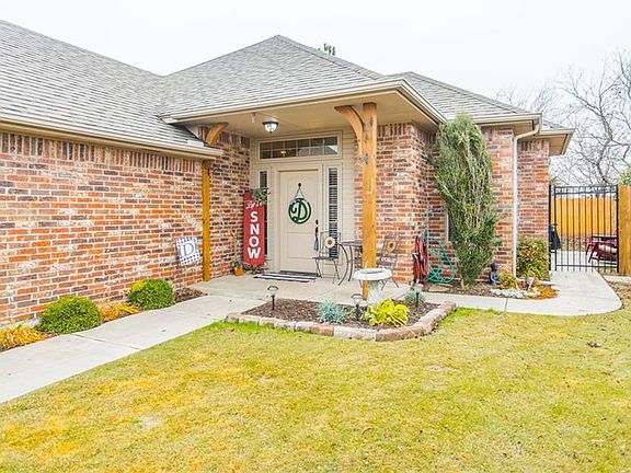 Stunning better than new home with new luxury vinyl flooring throughout the living dining kitchen & hallway areas. Gorgeous layout with low maintenance yard & end of the street location. Gated entry makes this area super private with access to all the best shopping areas that Moore has to offer. Granite counters, stainless appliances & beautiful finishes are featured throughout this home. Master suite features dual vanities, separate tub & showers as well as a utility room just off the gigantic master walk in closet.